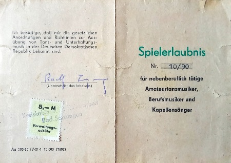 Zulassung zur Ausübung von Tanz- und Unterhaltungsmusik und zur Leitung einer Amateurtanzmusikgruppe.